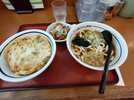 Read more土曜日の昼11時半に初訪問。 名物っぽいかき揚げ丼のうどんセットを注文しようといたら、店員さんより週末限定の山田セット(かき揚げ丼、うどん、パンチ)990円を勧められそちらにすることに。100円でパンチというもつ煮込みが付いてくる計算。 程なく着丼するのだが、セットうどんが通常の大きさでびっくり(・・;) もつ煮込みも小鉢レベルではない大きさ! ボリュームがとてつもない! かき揚げ丼は、好みが分かれると思われる、つゆにベチャベチャに浸かったかき揚げで甘め。 うどんは北海道小麦を使っていると書いてあったが、正直〇亀の方が上かな… パンチもまぁフツウ。 さいたまのソウルフードとのことだが、転勤で来た私の口にはイマイチだった。 コスパは良いのでたくさん食べたい方には良いんだろうなー。 店員さんの接客は元気が良く、雰囲気は良かった。 現...