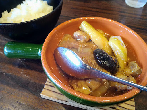メニューはトップがキッシュランチ。キッシュがお店のメインでしょうか。5種類+黒板に「本日のキッシュ」が2種類あります。 他にはパスタ、ロールキャベツ、牛ほほ肉煮込み、スペアリブ、キーマカレーなどがあります。 どれも美味しそうですがいろいろ悩んで自分は「トロトロ軟骨スペアリブとマコモダケの炒め物ランチ 1200円」を。妻は「特製大きなロールキャベツ(フォアグラとピスタチオ入り)ランチ...