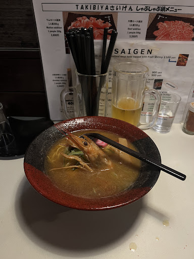 We arrived at 7:50 so most restaurants were closed. They were kind enough to accept us on the condition that we would wait 10 minutes and eat only ramen, which was totally fine with us. However, we ended up waiting 1h15 before actually eating. Many other clients were served before us… We felt like totally invisible.. We waited almost 25 minutes outside. Then waited an other 30 minutes to order food and drinks. It was very long.. Maybe because of the wait, we found the ramen pretty disappointing (but we must say we did not order the shrimp one which seems to be the specialty). In a nutshell, not a very good...