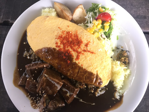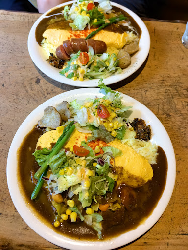 We ordered all the recommended dishes: beef tongue, sausage, and omu rice. Unfortunately, none of them stood out. The curry, in particular, was very generic and lacked the attention to detail we've come to expect in Japan. Everything was served on a single plate, and the extra vegetables we ordered came as a salad with sweet dressing served on top of the savory curry sauce, which was an unappealing combination.
