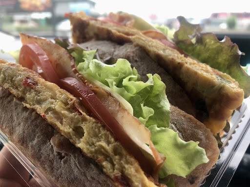 グリルチキンと自家製ピクルスのバインミーサンドは、 ソフトフランスパンに、グリルチキンと、チーズと、サニーレタス、トマト、自家製ピクルス(ニンジンと、大根?)がサンドされていますた。