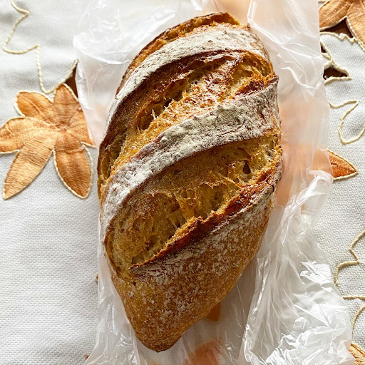 ライ麦パンのハードタイプが美味 ハード系のライ麦パンがあるとの情報から初訪問、小さめのクッペ(コッペパン型、車のクーペ型)と角型食パン一斤を購入しました。 ○ライ麦パン25クッペ 237円 ○角型食パン1斤(6枚切り)356円 当日のハード系ライ麦パンは、車のクーペ型、日本のコッペパンの手本となったクッペ型とクッペより大きめの丸いプール型の2種が棚に並んでいました。 購入したライ麦クッペはライ麦25%と国産小麦全粒粉のミックス、パリパリの外クラストはかなりハードで私好み。 一方、内のクラムはしっとり柔らかめ。 ライ麦のタンパク質は蕎麦と同じくグルテンが形成されない為、小麦強力粉100%のようなグルテンのモッチリ感、うどんに例えてコシはなく、クラムはややモッサリした食感。 それでもトーストすると小麦グルテンが力量発揮し、クラムに少しだけモッチリ感を感じました。 また、ライ麦パン特有の乳酸菌発酵の酸味が程よく感じられ、なかなかの美味で気に入りました。 次回はライ麦50%使用の大きめのプールを食べてみたいです。 一方一斤356円、トースト用にするには少々お値段高めの角型食パンも一斤購入。 翌朝トーストにして頂きましたが、これまで食べた食パンの中では最も「軽い」のでは? 持った感重量も軽く、トーストするとサクサク更に軽く、トーストと言うよりはソフトなラスクのような食感。 風味はこれと言った特徴はなく普通に美味しい食パンなんですが軽すぎて一枚ではお腹が満たされません。 普通の食パンが重いという方やデザート代わりに使用される方には重宝されるでしょうが、朝食メインのトースト用と捉える私たちには、ライ麦パンほどの魅力は感じられませんでした。 普段愛用している1.5斤375円と比較してしまうと、価格に対する内容の満足感は低め、コストパフォーマン...