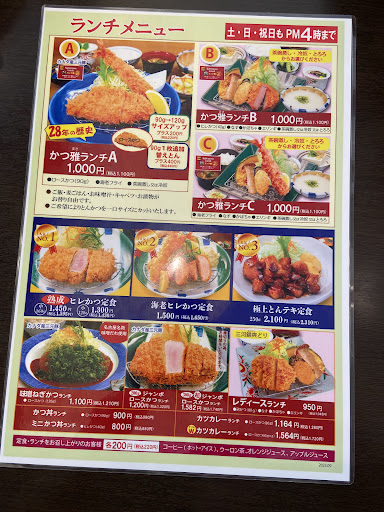 Read moreランチタイム16時迄。ジャンボロースかつ定食200g 1,100円(税込)がおすすめ(脂身少なめ、時々スジが有るけど)。小すり鉢に白ゴマが付きます。自分でスリスリしてソース鉢にします。私は麦飯大盛りで味噌汁、キャベツお代わりします(無料)。漬物は沢山あるので、一人のときは、さすがにお代わりはしません。 味噌汁の味噌と具、漬物は日替りで行く度に異なるので楽しみです。(味噌汁の味噌は基本的に赤だし味噌ではありません) テーブル上には甘口/辛口ソース、ゴマ/和風ドレッシング、よく効く練り辛子、塩、醤油が有ります。たのべば一味/七味唐辛子もいただけます。 毎月29日は『にくの日』でお得メニューが有ります。 接客は、はっきり丁寧な言葉遣い、清潔迅速な対応で心地よく感じます。 2023/03.約10%値上がりしました。 すりゴマがセルフすり鉢から、テーブル備え付けの容器入りになりました。 2023/10 今のマイブームはカツ丼ランチ、¥990-(税込) コスパ最強‼️ おせち料理の予約始まりました。 価格変更になりました。 2025/01/02.0930から福袋発売、¥5,000-...