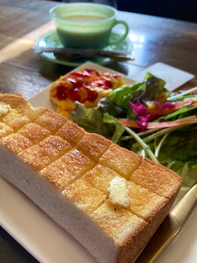 平日の8時半頃に入店。比較的空いていましたが、9時過ぎ頃から地元の方々で賑わいほぼ満席状態になりました 店内は木を主体とした内装にドライフラワーや古道具が飾られ落ち着いた雰囲気 ソファ席が多く、自然素材の間仕切りが適度に利用客同士の視線を隠すためとても居心地が良くゆったりとした時間を過ごせます モーニングは複数種選べますが、この日はロイヤルミルクティー(¥550)に追加料金なしのバタートースト+スクランブルエッグのプレートを選びました トーストは3cmほどはあろうかと言う厚切り 軽く入った切れ込みにバターが染み込みビジュアルも味も大満足 スクランブルエッグは卵の旨味が強く、サラダは丁寧に仕込みをされたカラフルな新鮮野菜 有り体に言えばサービスの域を超えた完成度です ロイヤルミルクティーはアイリッシュモルトを使用されているとのことで、カカオの風味がミルクに良く合っていました。変に舌に残らずあっさり目かなと思います お得なドリンクチケットの設定もある様です