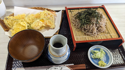 よくこちらのお店の前を通っていて、伺ってみたいと思い、日曜日のお昼時に伺ってみました。 こちらは、大貫駅から歩いて10分程、君津中央病院大佐和分院の目の前にあり、こちらに来られる方々が利用されるのであろう。 日曜日ともあり、先客は常連さんが2名のみでしたので、空いてるカウンターに着座。 メニューは、カウンター席上部に貼られている中から、「天ざる¥1350」を注文。 最初、こちらはお蕎麦屋さんなのかな?と思っていましたが、店名の通り「お食事処」との事で、定食屋さん?居酒屋さん的なお店でした。 なのでお蕎麦は、手打ちとかでなく、業務用?のお蕎麦を袋から出され茹でていましたので、食後の蕎麦湯とかはありませんでした。 天ぷらは、野菜4種にキス2枚と海老天と、十分な量で...
