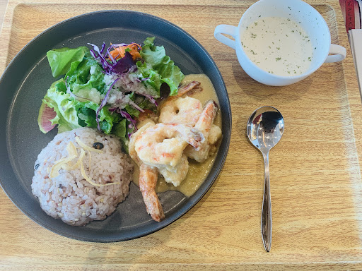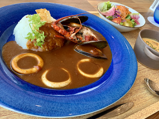 2022年にオープンしたベイサイド金谷に併設されているレストラン。 宿泊者以外でも利用可能。 駐車場は、宿泊者用のエリアの向いにあり。エリアが分かれているのか良い感じ。 海を見ながら食べられる。開放感のあるレストラン。 オーダーは各自のスマホで注文できる、今流行りのスタイル。会計もカードや電子マネー(iDを使った)が利用可能。 ただし、デザートやドリンクを合わせて注文すると、それが食事後なのか先なのかが指定できないため、店員さんが聞きにくるという… 海鮮丼、サンドウィッチ、バーガー、カレーなどメニューは豊富。 今回はカレーをチョイス。シーフードカレー。 カレー自体は美味しくいただけた。カレーで外すことはないかもしれないが… 次回はサンドに挑戦したい。 できたばかりで仕方ないが、贅沢を言うならば。食後のコーヒーとデザートのサーブタイミングは、こちらの状況を見て声をかけて欲しかった。こちらから出してと言ってしまった。 ただ、ホールの方は、明るく丁寧な対応をしてもらったので、不満はなく、また来ようかなあって思うお店。 内房で飯に困ること多かったけど、ココはこれからも利用したい。 (2022.6)
