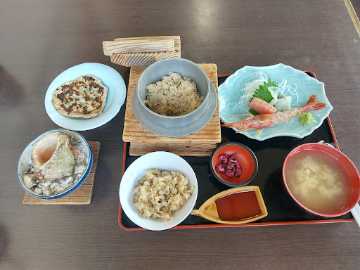Read more久しぶりの休日で天気が良かったのでドライブに。先般ドラマに出ていた食堂が富津にあったことを思いだし訪れてみるも、20組近い人が待っていて諦め、他を探して、魚貝料理屋さんを見つけてたかはしさんを訪問。 店の前は公園の広い駐車場なので車で行くには便利。 こちらも土曜日と言うことで一組待ちで、10分程で入店。 このお店には大きめの水槽があり、鯵やサザエ等が入っています。 ここは貝か穴子が評判らしく、メニュー選びにはかなり迷いましたが、海の幸定食A2400円税別を注文。少しするとまずサザエの壷焼きが出てきます。火がついていますが、既にサザエには火が通っているのですぐに食べられます。その後、お刺身(この日は、マグロ、白身、ボタンエビ)、さんが焼き、貝汁(あさり汁)、あさりご飯(釜で出てきますが釜で炊いたのではなくよそってあるだけ)がでてきます。あさりご飯は味付けはあっさり。お刺身は海老は食べご耐えありましたが、鮮度は普通。さんが焼きは、焼かずになめろうの方が良かった。 全体的にとても美味しい!という感じではなく、富津と言う場所と雰囲気が良いお店に感じました。スタッフさんもご家族が中心なのか、地方の観光地にありがちな感じの応対でした。もう少し、メニューも接客サービスもブラッシュアップしたら良いお店になるのに...