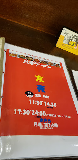 台湾ラーメンが売りの、台湾料理屋ですが、ほぼ、台湾料理ではありません。蒲郡競艇場前に有る、台湾料理屋なのですが、地産地消を掲げて要る、お店です。台湾料理や、中華料理を、掲げて要る、お店では、台湾や中華出身の方が、調理されているお店が多く、クセがある料理が有るので、馴染み難い所が有りますが、食材全てを、三河産を使って居るので、台湾料理初心者でも、食べやすいと思います。調味料も、此の店独自の物らしく、餃子を食べて居ても、独特の味わいが有りました。量的にも、多過ぎず、生大ビールと、一緒でも、食べやすいでした。がまポンサービスは、店長オススメ餃子が、無料で付くので、がまポン持って、又、来たく成りますな。名鉄電車でも、JR東海でも、蒲郡競艇場前駅から、歩いて来れますので、電車で、来たほうが、...