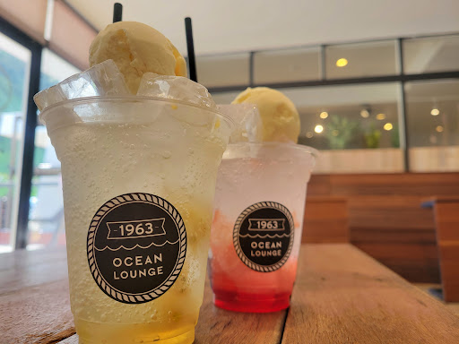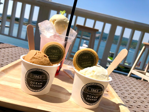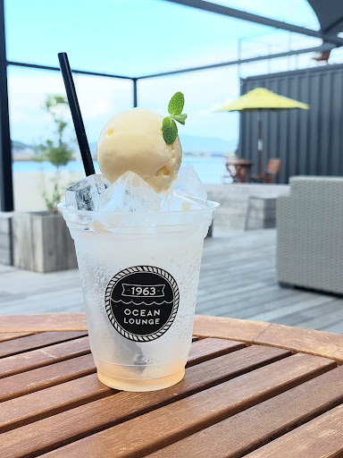 ここはたくさん映えスポットがありますが、パパッと撮って席を選びます。 この時はちょうど他にお客さんがおらず、席は選び放題♪ 店内、階段席、ガーデンソファー、コンテナ屋根席などいろいろ。海を眺めながら飲むクリームソーダは爽快です(^^)