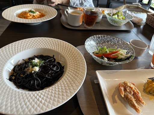 パスタはイカスミパスタにしました。 普通です。あまりコクがなかったような… サラダはいろんな種類があり迷います。 どれも美味しかったです。 カニの唐揚げ?があったのですが殻がついているので非常に食べにくかったです… ジェラードとケーキも種類がたくさんあります。