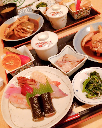 個人のお寿司屋さんは怖いですが、入り口にオススメセットとお値段が書いてあります。夜もランチと同じような定食があり、お腹いっぱいに。 カウンターと小上がりが数個、ご夫婦?お二人で切り盛りされていますので少しお時間かかるかもです。