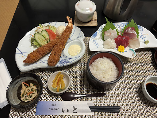 Read more土曜日の夜、来店しました。5人で行ったのですが、空いていて10人以上入れる広い掘りごたつ的なテーブルの個室に案内されました。 それぞれ、定食を注文。メインはカニ天婦羅、カニ天重、天婦羅、ミックスフライ。天婦羅には海老天婦羅が3本、カニ天婦羅にもカニの足の天婦羅が3本、それぞれに野菜天がありました。ミックスフライは海老フライ、ヒレカツ、カニクリームコロッケ、魚フライ、イカフライというラインナップ。カニ天重はカニ天婦羅がそのまま、重箱の御飯の上に乗っている感じです。定食には共通で、小鉢(今回はアサリと胡瓜の酢味噌あえ)、茶碗蒸し、刺身(天婦羅とミックスフライ)又は甘酢で食べるカニ(カニ天婦羅とカニ天重)、御飯と赤だし、漬物が付きます。 なかなかのボリュームで、大満足です。 ただ、食事が提供されるまでに30分以上待ちました。空いていた割...