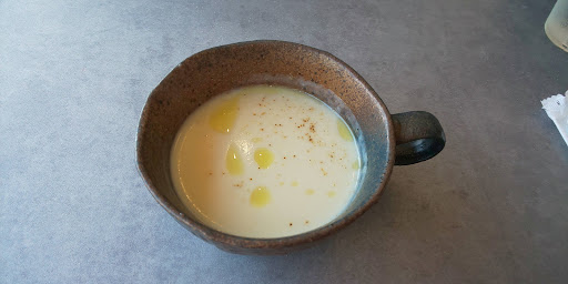 高齢の母と2人でランチで利用しました。 三連休の中日、予約をしていませんでしたが13時前に電話をしてから伺いました。 場所はナビだとたどり着く事は困難です。口コミの写真のにある電柱看板を目印にしていくのが分かりやすいです。 外観はスタイリッシュなブルーの外壁で、入り口の寄植えや店内の観葉植物などこだわりが感じられて素敵だと思います。 ランチ¥2,000 ・スープ付き前菜6種 ・メイン6種から1種類チョイス ・食後のお茶(コーヒーまたは紅茶) 前菜はどれも手が込んだ内容で全部美味しかったです。スープはヴィシソワーズでじゃがいもの舌に残るザラザラした食感がなく、なめらかでした。自分的には塩味がもう少しあった方が好みかな。 メインの海老ココナッツカレーと焼きキーマカレードリア、単品でカニクリームコロッケを1個選びました。 海老ココナッツカレーは海老がゴロゴロ入っていて、別添えのカップでご飯おかわり出来そうなくらいカレーがいっぱいでした。(高齢者なのでお代わりはしませんでしたけど)辛いのが苦手な母ですが、問題なく食べられました。 焼きキーマカレードリアはキーマカレーのスパイスの風味がよく出ていて好きな味付けでした。ドリアというにはキーマカレーを引き立たせるためなのか、ホワイトソースは少な目です。 最後のアイスコーヒー、オリジナルブレンドかなぁ。深煎りです...