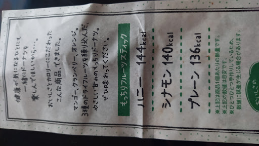 Instead of putting my doughnuts in plastic/paper packaging, they put them on a plate. I appreciate this, because it reduces material waste. Additionally, my drink was served in a glass, rather than a disposable cup. I appreciate this too. I visited the store near closing time, but was not rushed to leave. Other customers were also permitted to enjoy their food at a leisurely pace; the attitude of the staff is good. The stock of products was limited due to being near closing time, but it was still acceptable. It would be nice if the store was closer to the station, but the...