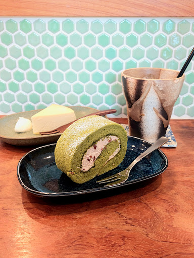ケーキも6種類から選べて、私は抹茶ロールをchoice...