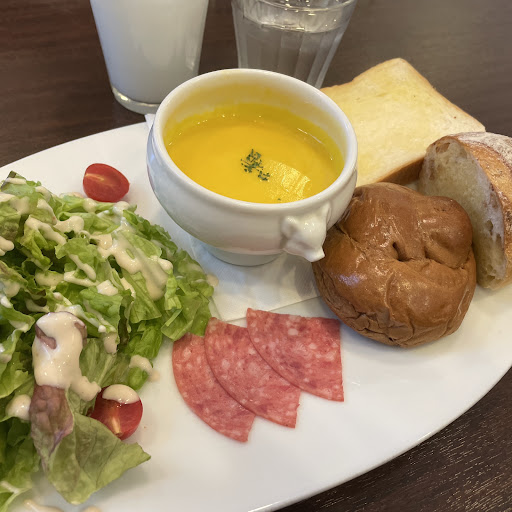 店内の席数が少ないのもあり、かなり人気のため前回諦めてしまい今回再度来店しました☺️9時半頃満席でかなり待ちそうだったため別の喫茶店に行ってから、10時半頃に行きました!ちょうど常連客さんがお帰りになり、なんとかモーニング成功しました!常連客さんもかなり優しくて温かい人達でした😌 店員さんのおばさんは、脳梗塞の後遺症の為会話が少し不自由なようなので、レビューに書いてある無愛想というのは、後遺症のためかと思います😢咄嗟に言葉が出なかったり、言葉が上手くでないことがたぶんよくあるのかなと思いますが、帰り際に、1度満席で出たことを覚えててくださり、おいしいみかんを頂きました。とても温かい気持ちになりました🥲 とても優しい方なので、誤解されてしまうのが悲しいです😢 また、子ども達もお手伝いしてくれたり帰りに手を振ってくれて可愛かったです🫶🏻 以前やっていた選べるモーニングがなくなり今は1種類だけとなったそうです。ドリンク代だけでかなりの量が出てきて、コスパかなりいいです👍🏻パンもスープもおいしく、サラダのドレッシングも美味しかったです🤍ココアはホイップ...
