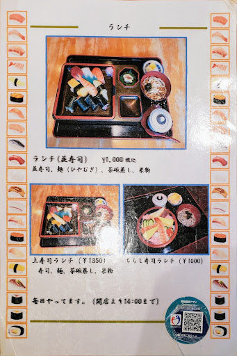 Read moreお昼のランチに伺いました❢税込み1000円の超☆お値打ちなランチをいただきました。厚切りのしっかりしたお魚の握り寿司は〜美味しいですし、具沢山の茶碗蒸しも良いお味。それに、シンプルな素麺とデザートのフルーツがありました❢満腹ですm(_ )m 私は、握り寿司でしたが、パートナーは、ちらし寿司をいただき、美味しいと申しておりました。 ビックリしましたのは、特大の湯のみ茶碗です❢あがりが沢山入っており、重かったです(笑)。 私的には、あがりのお茶の味が〜もっと美味しかったら最高でしたがm(...