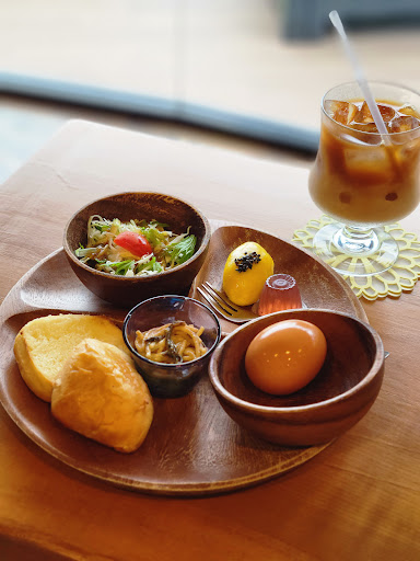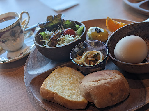 Read more店内は左右に重厚なソファー席と、階段を少し降りた景色のキレイなテーブル席に分かれていました。テラスにも席があり利用できるようです。モーニング付きでコーヒーなら500円で、コーヒーのみなら350円でした。 テーブルにはちみつもあるのでパンにかけるのも良いかもしれません。またゆったりとした時間を過ごしに行きたいと思います。