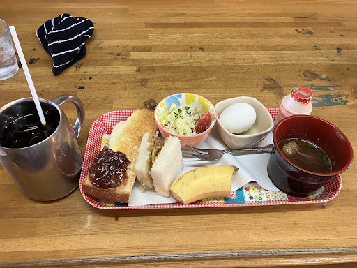 Read moreモーニングに来ました。 アイスコーヒー、パン、焼きそばサンドイッチ、サラダ、卵、味噌汁、ヤク...