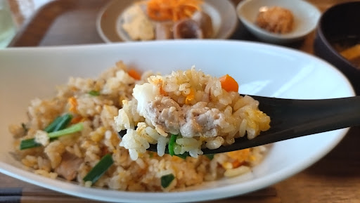 Read more駐車場が西側に周ったところに4台あると知って気になっていたこちらを訪問 チャーハン500円+100円アイス珈琲を 頂きました お婆ちゃんちに来た感じに 居間と座敷で頂くお昼ご飯 見た目もいい、優しいお味のチャーハン 里芋とイカの煮物、人参、大根入り玉子、味噌汁にクッキー 美味しかった〜 いい、いい、こういうの良い🙆 アイス珈琲にもチョコムース菓子付いて びっくらポンのお安さ👀 ありがとうございます
