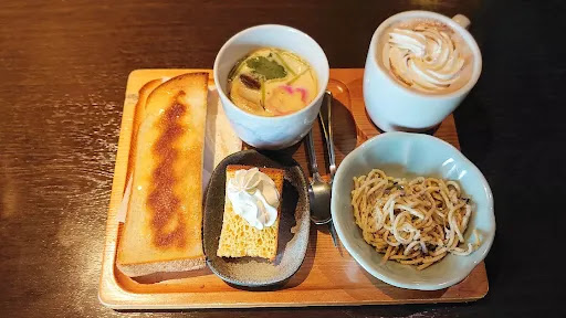Read more8時からモーニングと、14時までのランチのお店。祝日の10時半ごろ、お買い物の足をちょっと伸ばして、寄ってみました。岐阜市といえど、すぐにろお隣は関市。幹線道路に面していても、静かな地域でした。が、次々と来客で賑やかでした。駐車場も広々と20台は停められるスペースありですが、待つ人多く、たまたま、カウンターが空いていて座れました。サービスモーニングの茶碗蒸しがいいお味。トーストの、シナモンがきいてて美味しかったです。きっと、ランチの和食も安定の美味しさなんだろうなーと想像できます。 550円ホットコーヒーでこの充分すぎるモーニングサービス、ありがたい🙏コスパ最高。なのですが、どなかたの口コミに、カウンター客の目の前に、これから出されるモーニングセットのトレーがずらりと並べられていて、清潔感に少し不安が、、、とが書かれたものがありましたが、確かに、低いパーテーションでもあったら、いいのかも?と、感じましたね。そのほかの点では、建物の雰囲気も、店主のかたの優し気な感じや、店員皆さんの朗らかさが伝わって、いい...