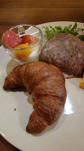 【オーダー】 ・セットモーニングのクロワッサン ・パインとキウイのスムージー 990円 ・セットモーニング ライ麦 ・ムレスティー:さくら色のパステル (さくらんぼう・白桃・メロン)