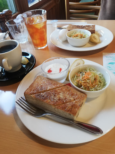 お店の前に5人以上で来店される際は予約をしてくださいとのことでした~ モーニングは、通常はマーガリンですが ジャム、小倉、シナモンが無料で選べます (10月~5月はきなこもありまさ) パンもライ麦パンが選べます 10時からはハムサンドも‼️ただしフルーツはつきません~💦💦