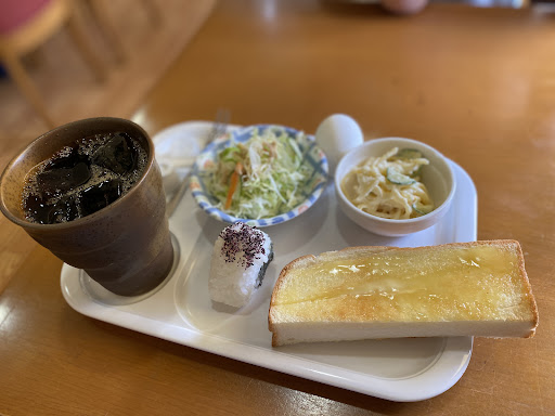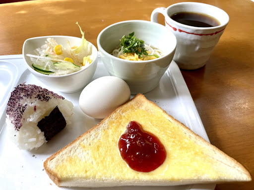 Read moreまず初めに驚きなのが、これで430円、コーヒーチケットなら10枚綴りが4000円なので実質400円で出されてくる事に驚いた!!普通なら500円以上してもおかしくない。茶碗蒸しは土日限定?っぽい。その茶碗蒸しは茶碗を持っただけで表面プルプルしてて見た目から美味しそうで、実際に美味しかったです。通常は、焼きそばかにゅうめん?みたい。焼きそばも美味しかったです。おにぎりも塩加減からシャリの具合までめちゃ好み。ランチメニューも拝見したけど、めちゃ美味しそうでランチ食べに来てみたいとも感じました。身近な近所の喫茶店感がとても良い雰囲気ですね!なので、お客さんもそんな感じの方が多い気がしました。この値段でモーニングを提供してくれる...