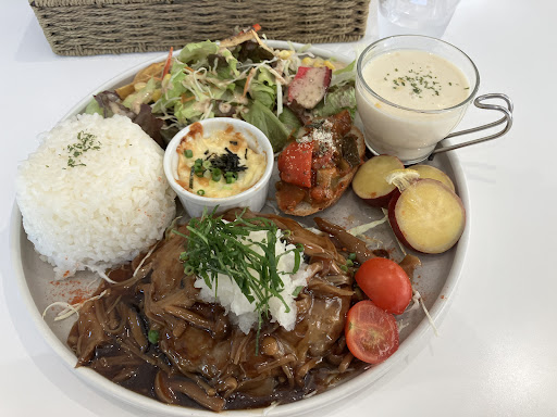 初めて行って、スープランチを頼んだ。 結論から言うとイマイチだった。 スープのお供に、バゲットかおにぎりかを選べる。 私はバゲットを選んだ。 バゲットにはマーガリン?かと思われるものがベターっと塗ってあり、しつこい。 スープはというと、素人の料理といった感じでイマイチだった。しかも量が多過ぎ。出された時はどうしようかと思った。 バゲットにバターが塗られていなければスープにつけて食べることができたのに、それも出来ず。