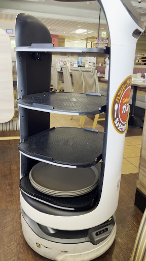 Read more2ヶ月ぶりに入りました。何とウエイターが外人さんでした。丁寧な応対に感動しながら席につきました。タブレットの注文にも慣れました。マルゲリータピザとドリンクバーの900円を注文しました。運ばれてきて驚いたのはピザがカットされてなくて、ピザカッターで客が好きなように切れるサービス。初めてピザをピザカッターで切りました。マルゲリータピザは出来たて熱々で非常にシンプルながら美味しくいただきました。内装もホテル並みで気分良く食べる事が出来ました。同じスカイラークグループのから好しの唐揚げも食べる事も可能です。またまた来たくなるお店作りはさすがでしたね!運び屋さんはロボットさんでした。和風おろしハンバーグ最高に美味しかったですね。ドリンクバーとスープとライスのセットが450円でした。野菜ジュースは三杯飲みました...