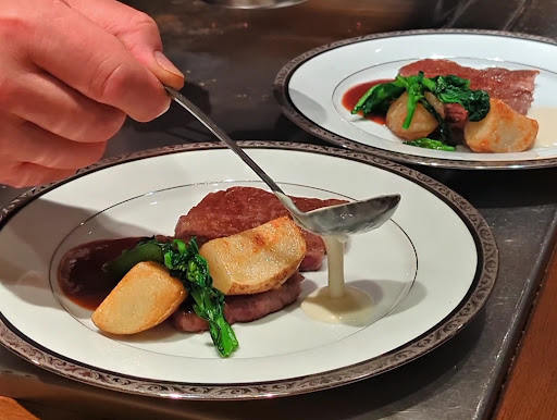 ステーキも、かたやミディアム、かたやミディアムレアのオーダーを、さらっと仕上げる♡ 合間の会話も秀逸。