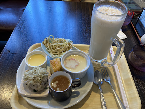 Read moreリーズナブルです。支払いは現金でした。 ドリンク代のみのモーニング・サービスは、天然酵母トーストか玄米おにぎりに、茶碗蒸し、具入りスープがワンショット・カップ、お惣菜(スパサラダ)、デザート(カット・ケーキ)、ゼリー(プリンでした)、っと、盛りだくさん。ご馳走様でした。 ドリンクは本日のスムージーをチョイスしましたが、数種類(配膳の際に中身を説明頂きましたが、覚えきれませんでした。ブロッコリースプラウトが入ってます)野菜系の入ったスムージーでした。 店内は明るく(店の人も明るく)、USENのスピーカーから静かにレゲエ調の音楽が流れていました。 駐車場が一番難関ですが、店前に3台、両脇に2台づつくらいある様です。右側(西側)は、縦に重ねればもっと停められます。 席は20席程...