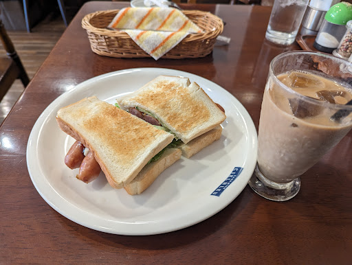 ⭐ドリンクセット ドリンク代でトーストorホットサンド・ゆで卵・一口揚げ物つき。量はパン半切れ程度なので少食な人にオススメ。