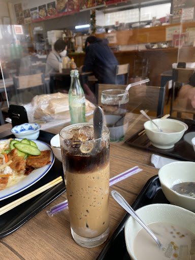 食後のチェー(ベトナムぜんざい) は練乳と柔らかく煮込まれた赤豆、タピオカ的な透明でプリプリした葛のような固形物(名前がわからんけど 良いアクセント!) を氷で冷やしてあって、コーヒーが飲めない自分には、とても嬉しい甘味です(笑)