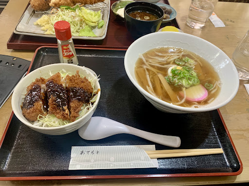 Read moreノボリでとんかつを推してるので、それだけかと思いきやメニューのラーメンにも当店自慢の文字。気になったので味噌カツ丼もついてくるラーメンセットを注文。 出てくるのが早くて少しびっくり。手抜きなんじゃないかと疑ったけれど食べてまたびっくり。とっても美味しい。 ラーメンは醤油スープで少しアッサリ目。チャーシューはしっかりとしていて、もやしやネギもスープによく絡みます。今どきでは珍しくナルトも乗っていて大満足。 味噌カツ丼はカツがさくさくでお肉が柔らかく、ご飯とキャベツが相性最高!箸が止まりませんでした! 付け合わせにたくあんも付いていて、そのたくあんもとっても美味しいので文句なしの五つ星です!店員のおばちゃんも人当たりのいい方なので、皆...