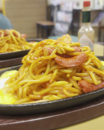 まさかの友達は大盛りをオーダー🤣🤣🤣 なかなかのボリューム 赤ウインナーがやっぱりいいよね 鉄板でアツアツをいただきました いつも家では細麺なので、この太麺も懐かしい感じ