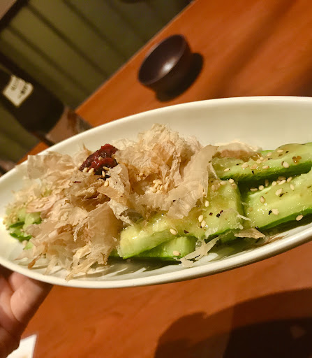 ☆梅叩き胡瓜 480yen 叩き胡瓜に胡麻油、お塩が掛けてあり最後に梅肉♫ これだけでお酒が進みます♫