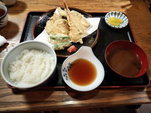 Read more天ぷらをリーズナブルにいただけます。 天ぷら定食と天ぷら定食(上)の違いを聞くと、えびが2本付いているとの返事。私は天ぷら定食、彼は天ぷら定食(上)をいただきました。 (上)との違いはえびだけでなく、野菜なども違っていて、アスパラが付いていました。 お漬物のたくあんも違う! カツオのたたきも注文したけど、定食の後に出てきたのが残念💦 先に食べたかったです。