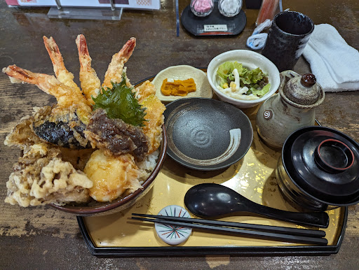 Read more土曜日の夕方6時半過ぎに到着して五分くらい待ちました。数分後にあとから入店しようとした人が材料不足で入店拒否されていました。夕方5時半開店で1時間くらいで材料不足なので来店する際は御注意をして下さい。 入り口付近に張り紙で掲示されていましたが 注文後にかなり時間かかるので気を付けて下さい。まさにその通りでした。注文して30分以上かかりました。時間の余裕ある人だけ入店した方が良いです。 くれぐれも時間が無い人は来店はやめるべきです。男の天丼を注文しましたが、かなりボリュームがありました。天麩羅だけでなくご飯🍚もボリュームありました。個人の味覚があるので人それぞれだと思いますが、個人的な感想は味の方はちょっとイマイチです。 値段は全体的にパンチある強気な価格です。 個人的にはあまりお勧めはしないです。 TV番組に掲載されたみたいですが、番組のレベルはイ...