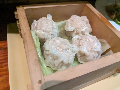 貝柱の焼売は、調理した蒸し器で、そのままテーブルに運ばれます。 黒酢を漬けて食べると、噛むごとに、餡のジューシーさと、黒酢の...