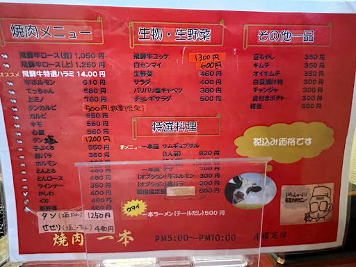 飛騨牛は、ユッケ、ロース、上ロース、ハラミのようですが、とてもお値打ちです。特にユッケは飛騨牛なのに安く、とても美味しかったです。ホルモン系を一緒に頼むと、コスパが良く食べられるのではないかと思います。