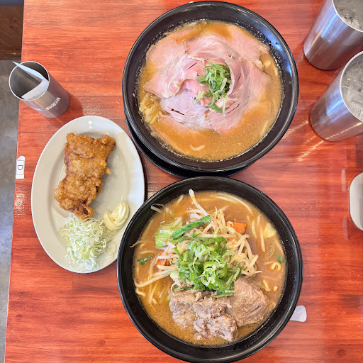 食べたモノ ◾️角煮軟骨味噌ラーメン 1150円 ◾️チャシュー味噌ラーメン 1200円 ◾️大きい唐揚げ1個セット 200円 トータル 2550円 ※ラーメン注文で、ご飯食べ放題🍚 ーーーーーーーーーーーーーーーーーーー ◾️お店の感想 メニュー写真ほどのインパクトはないが 味は普通に(*゚Д゚)эcゥッゥマィ サッポロ一番味噌ラーメンが好きな人は 好きなタイプかと思います 甘みある味噌が好みの方には賛否が 別れる味噌ラーメンです ラーメン価格が高騰している中で 野菜も入っててノーマル味噌ラーメンが 850円で、ライス無料🍚 唐揚げセットにしても1050円で 食べれるので男性客が多く 昼時には満席となっていました! 豚軟骨も柔らかくてトロトロなので 美味しいと思うのと チャーシューもレア系なのかな? 大判で悪くない😋 ただ、無料のご飯が🍚 少し贅沢を言うと美味しくない🤫 いやいやいやいや お米の価格高騰中の中で無料で 食べ放題なんて親切極まりないので 贅沢を言っちゃバチが当たりますね🫣 ご馳走様でした♪ ーーーーーーーーーーーーーーーーーーー ◾️評価目安 私の評価は→⭐️3 訪問当時のGoogle評価は⭐️3.9 評価理由:普通に美味しいし 価格帯もお得感あるかと思います! が、何度も行きたい!とまでは、ならなかった ので、普通評価とささていただきました🫢