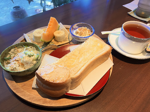 2025/9平日のオープンすぐ、モーニングに伺いました。空いてました。 ホットは480円でしたがコーヒーが苦手なためダージリンティー500円を注文。ワンプレートに厚切りピーナッツバタートースト、ミニサラダ、ヨーグルト、メロンとバナナ。良心的な価格だし美しく盛られてて、疲れた体にテンション上がる。 トーストはピーナッツバターを端に乗せてくれてるので両方の味が楽しめました。ピーナッツバターも甘すぎなくて美味しい。 店内はクラシックが流れててすごく落ち着きました。 マスターも奥様?も挨拶やちょっとした声掛けしてくれて、帰りも「お気をつけて」と言ってくれました。また伺います!