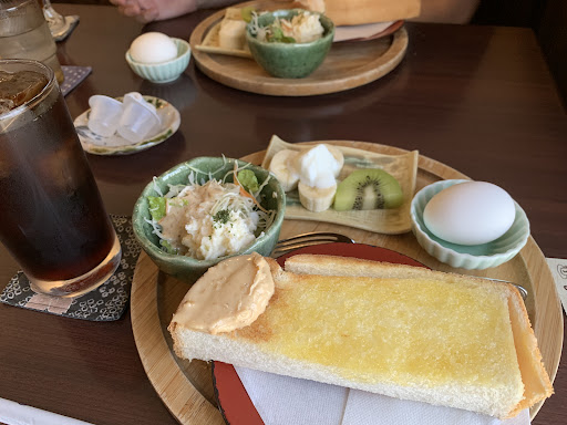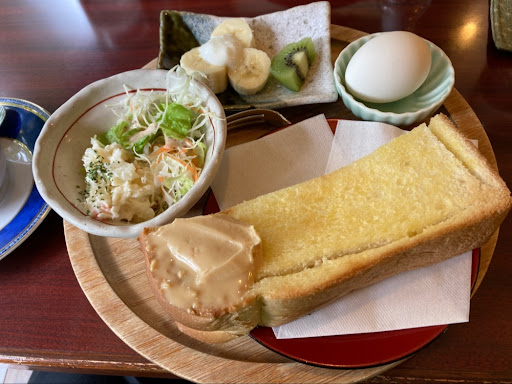 Read more息子の家が近くで気が向いたらモーニングしてますが、そうでもないとGoogleでグ〜ルグルしない限り見つけられないでしょうね? 最近よくあるAセットやらBセットみたいな 朝から高価なモーニングセットは無く、通常のモーニングですから私はコーヒーチケットで対応しています。 内容は至って普通ですが、ピーナッツバタートーストも旨いし、ポテサラも旨いです。 ただ偶然運が悪いのか、毎回茹で卵の殻が剥けないんですわ(泣) 白身が無くなるやつです! このイラっと感💢わかります?わかりますよね? これさえなけれ...
