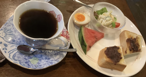Read more落ち着いたお店です。常連さんが多く一見さんは少し落ち着かないかも。でもすぐ慣れます。ホットサンド、トースト、ピザトーストから選べるモーニング。どれも美味しい。パスタサラダに煮卵の半切りとフルーツが付いています。コーヒーも美味しいです。昔から何回か行きましたが、ここ最近ハマっている店です。 いつ...