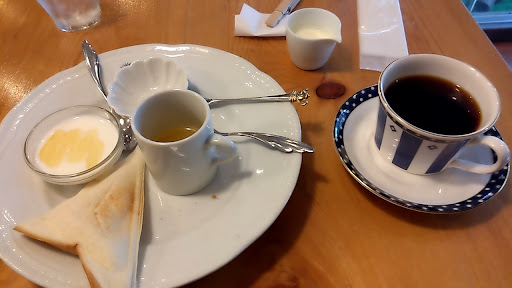 Read more一人単独で、初めての長良川メドウにサッカー観戦あとで急な寒さの為、暖を取りにたまたまフラリと入りました。 照明よりも窓からの午後の日光が目にも心にも優しい明るさのお店です。 少し重い扉を開けると、、 暖房はもちろんですが、少しガヤガヤした、ご近所さんの話し声が、音楽のBGMよりもなんか〜居心地良い温かさです。 ホットコーヒーだけのつもりで入りましたが、マスターの一声目が、モーニングですか〜?と。えっ、じゃあ、とホットサンドモーニングを、いただきました。 中身のぎっしりマッシュポテトがほわほわっと温かくてめちゃ美味しい。 さらに、小さいアップルゼリー、ヨーグルトに切干大根の小鉢付き。ブレンドコーヒーも、もちろん美味い。 午後16時に600円で至高の1時間を、いただきました。 又、必ず寄らせていただきます。 PS.申し訳ごさいません、写真は半分食べてからの状態になります。ほんとはホットサンドはち...