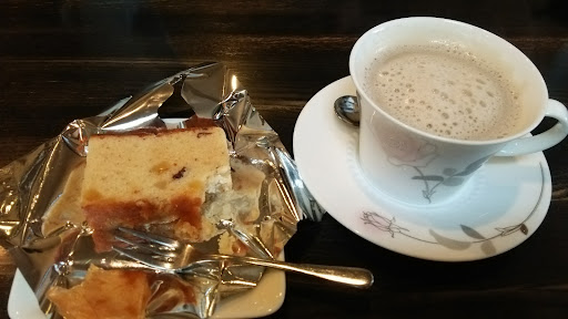 Read more時間調整も兼ね、ちっょびりお茶したくてたまたま前を通って見つけたお店。日曜の16時過ぎ、入店時は僕たちだけ。とってもフレンドリーなマスターが一人。とっても丁寧に接客して下さいました。BGMは静かにクラシックが流れています。この日、頂いたのは「キリマンジャロ550円」「ミルクティー500円」。僕の好きなキリマン…ちょっびり、イメージと違ったけどコクの深い美味しい珈琲でした。おつまみに、ケーキorあられがつきますがこの日は一個ずつチョイス。これが想像以上にどっしりしたサイズ。何だか...