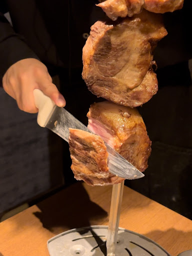 Read more職場の送別会でこちらのお店を使わせていただきました。 とてもオシャレな内装、家具で揃えられた店内は落ち着く空間となっていました。 シュラスコ食べ放題のついたコースと飲み放題のコースをいただきましたが10人程度の宴会ができる個室が入口の目の前にあるため他の人の目が気になったのとブュッフェと飲み放題のお酒を取りに行くのに長く段差のある廊下を歩いていかなければならずとても面倒と感じました。 ブュッフェの料理は6種類くらいのサラダ、ピザ、カレーライス、フライドポテト等々種類が豊富でしたがフライドポテトは塩がかかりすぎていて美味しくありませんでした。 またシュラスコについても焼くのに時間がかかるようで注文しても全然きませんでした。早く持ってこようとしてほぼ生の肉を持って来られて机の上で切るパフォーマンスをしたところ血が飛び散るというハプニングも起き最悪でした。 シュラスコが3種類ほどきましたが食べ放題メニューのシュラスコは結局1人小さなお肉を3切れ程度しか食べれない上に1時間半でラストオーダーを言い渡され全然満足できない会となってしまいました。ラストオーダー前に注文していたお肉も時間がきたことを理由に運ばれてきませんでした。