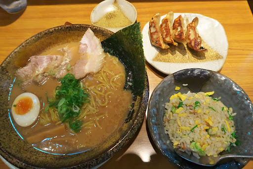 Read more豚骨醤油チャーシュー麺(細麺)とミニチャーハン+餃子セットをいただきました。 ラーメンは太麺と細麺が選べます。豚骨醤油なので細麺を選びましたが、中太麺ぐらい太いです。独特のモチモチ感があり、味噌味の方が合いそうです。 チャーシューはトロトロで、薄いのでほとんど噛まないでも食べられます。味も良い。 スープは、豚骨感が無く後味に魚介系の出汁の味が残ります。 一口目は塩辛く感じましたが、だんだん慣れてくると後を引く味です。ただちょっと濃く感じます。 チャーハンは、ネギの香りが良く利いていて美味しい。 味は薄めですが、濃いめのラーメンスープにはちょうど良い。 餃子は、チルド餃子のような、可もなく不可もなく、普通。