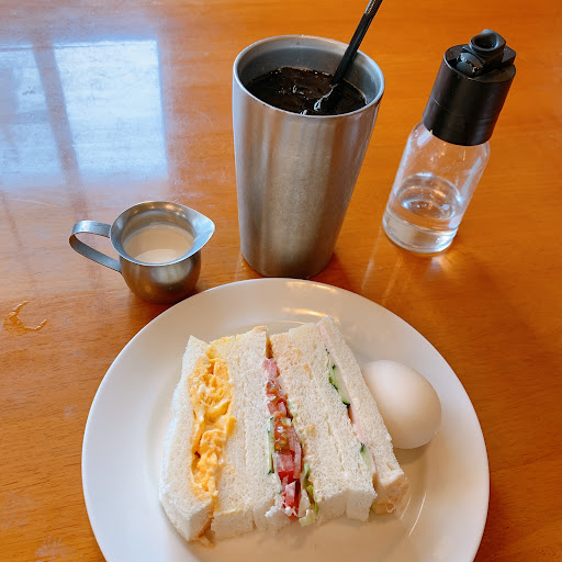 日替わりコーヒー450円にモーニングサービスでサンドイッチ3種と茹で卵。 コーヒーは厚手のカップに並々と注がれていて、これだ!!という嬉しさが。卵のサンドイッチが厚焼き卵と思いきや、オムレツ?スクランブルエッグ?系でとろっとろでとても美味しかったです。